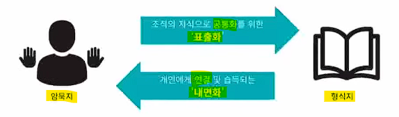 - 형식지 + 연결화 + 내면화 => 암묵지